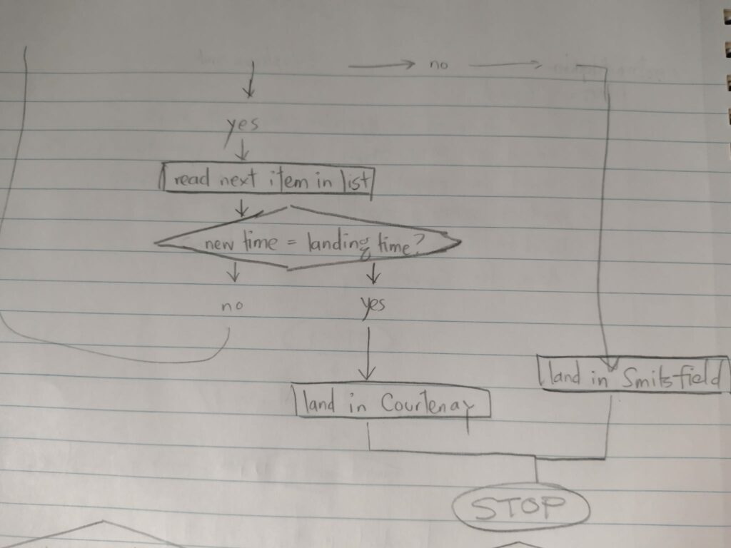 - If there is no suitable landing time in Courtenay then land in Smits Field