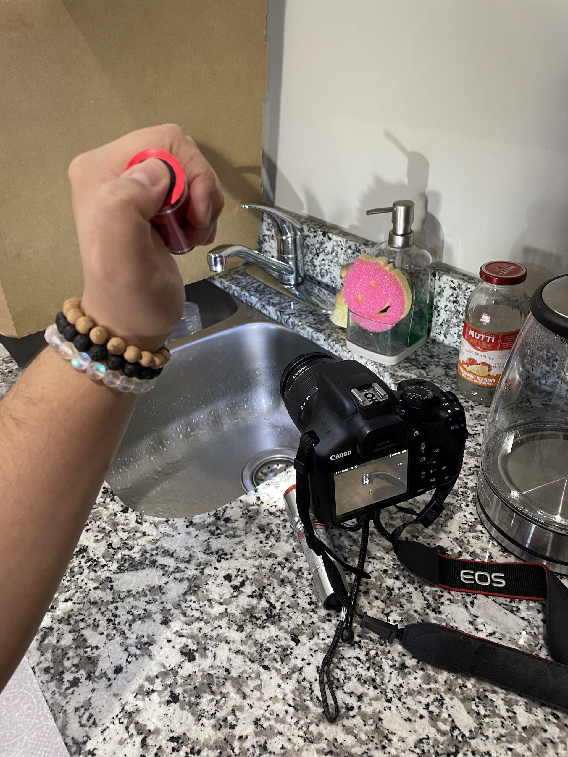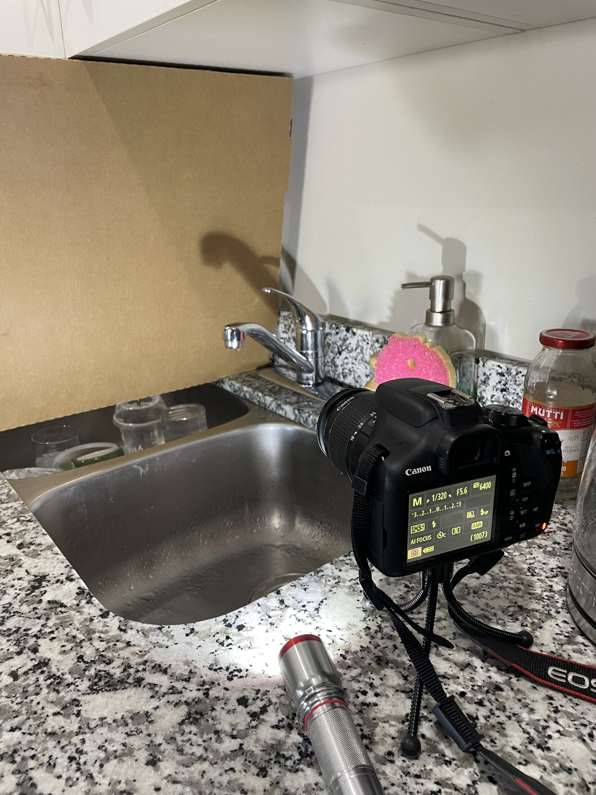 Here are some images of my setup! I had to be creative with the lighting for the “frozen droplets” part.