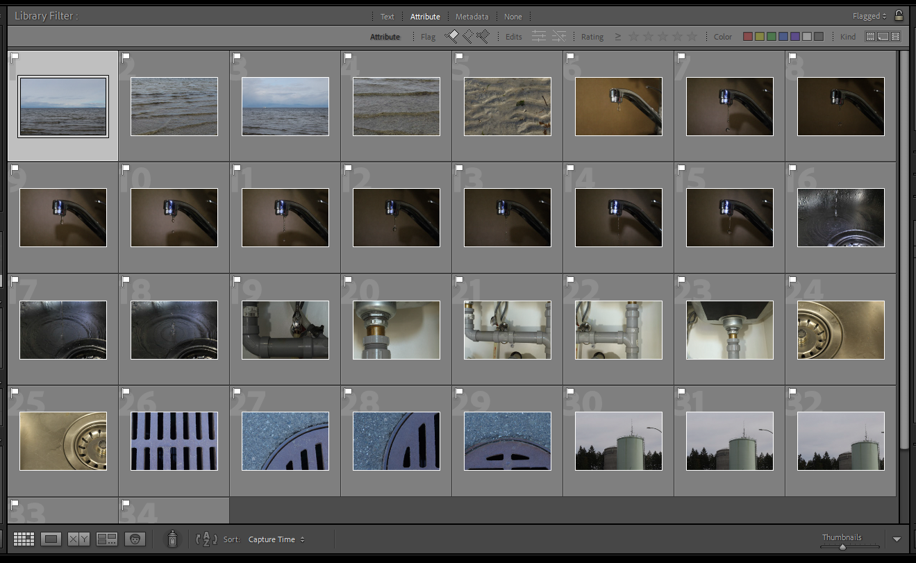 Yesterday, I finally had a day off of work and so I took all of my indoor photos. I really wanted to experiment and try to freeze droplets of water in my photos and I hope some of them are usable because I had a lot of fun trying to get them right. I also tried to capture the ripple effect on the sink itself to capture images of where the water goes as a process. With that in mind, I included simple photos of the drain as well. I took pictures of the pipes underneath my sink and then of a manhole that is outside my apartment building in the parking lot area.